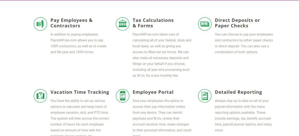 Payroll4Free.com is a payroll service company that focuses on very small businesses and offers the basic services free of charge.