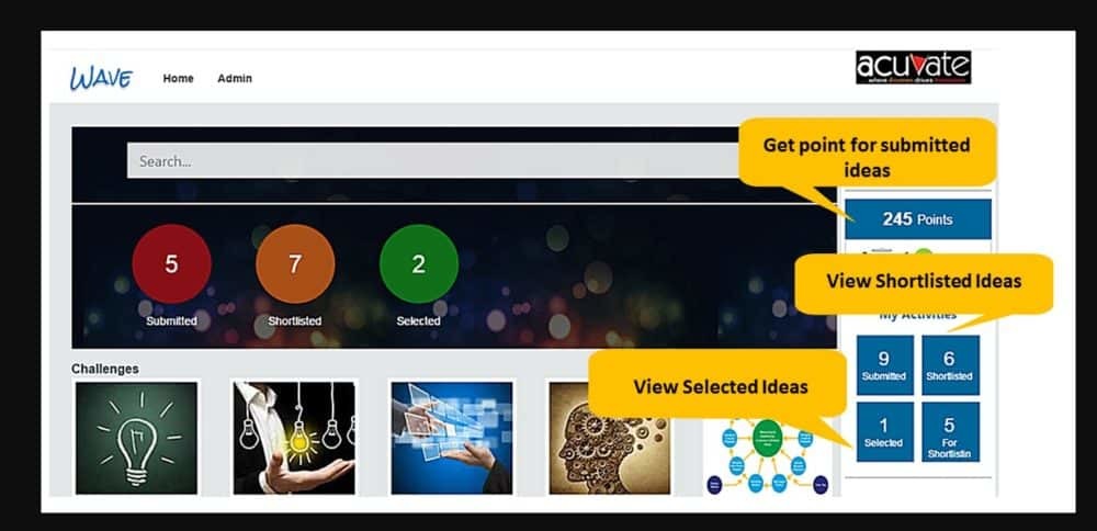 Wave is an idea management application designed to capture, collaborate, evaluate, and select bright ideas that can be implemented in solving various business challenges. Wave nurtures inclusive, transparent, and robust innovation management process.