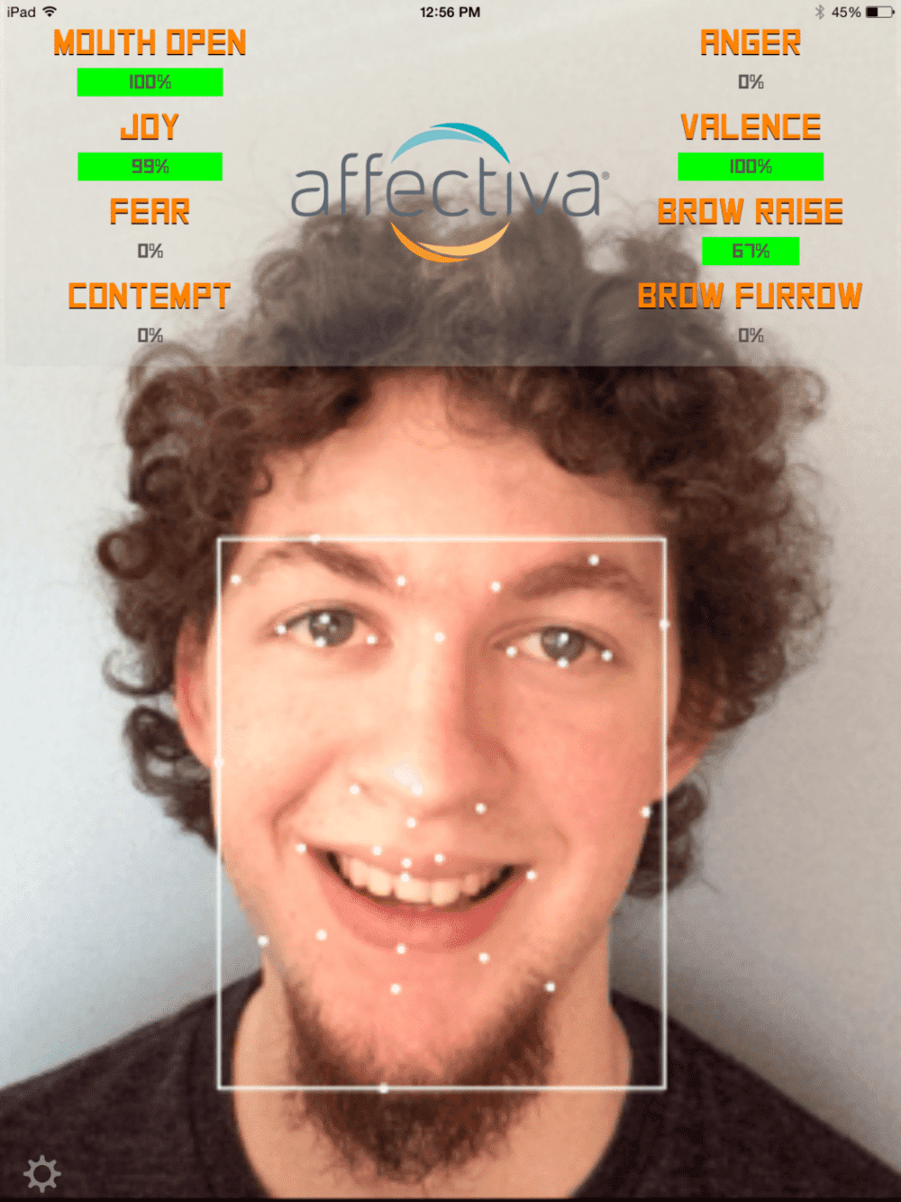 Affectiva has also released the next generation of its Affdex Software Development Kit (SDK), the world’s only emotion-sensing SDK for iOS, Android and Windows platforms. Affdex SDK 2.0 delivers dramatically improved accuracy with new expression models trained over a broader set of facial images. Affdex SDK 2.0 provides developers better ease of use and accessibility by standardizing models for seven emotions: Anger, Sadness, Disgust, Joy, Surprise, Fear and Contempt. It also includes new facial expressions for a total of 15 facial action units. Some of these facial action units that are included in the SDK are very nuanced expressions that are difficult even for the human eye to detect, such as a “Smirk” or a subtle “Eye Close”. The new release provides 3D head orientation metrics, specifically pitch, roll and yaw, and supports the development of 64-bit applications for Windows.
