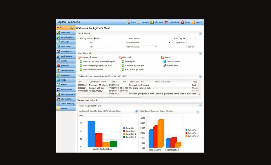 Agilon's One is a future-ready, Donor Management and CRM solution to help non-profit organizations manage their donors, alumni, board members and corporate partners.