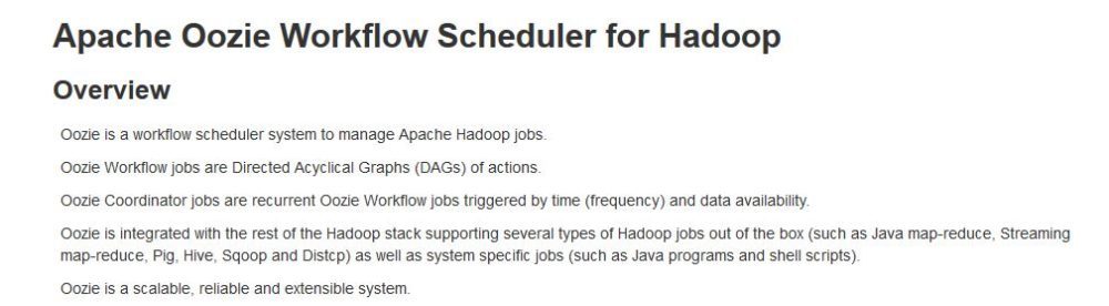 Oozie – a server-based Workflow Engine specialized in running workflow jobs with actions that run Hadoop Map/Reduce and Pig jobs. Apache Oozie is a tool for Hadoop operations that allows cluster administrators to build complex data transformations out of multiple component tasks.