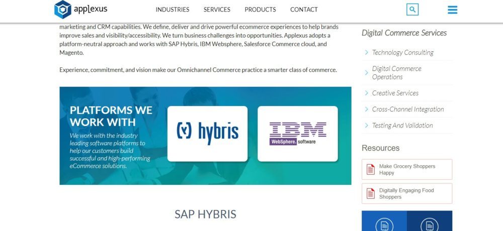 As an SAP Hybris Partner, Applexus helps businesses of all shapes and sizes to get ahead of the challenges within the ecommerce industry. From web store-fronts to customer incident tracking, Applexus enables retailers to customize functions and extensions to meet their specific needs. Applexus offers end-to-end services that are customized to your business needs, ensuring that you get the most out of your investment in Hybris projects.