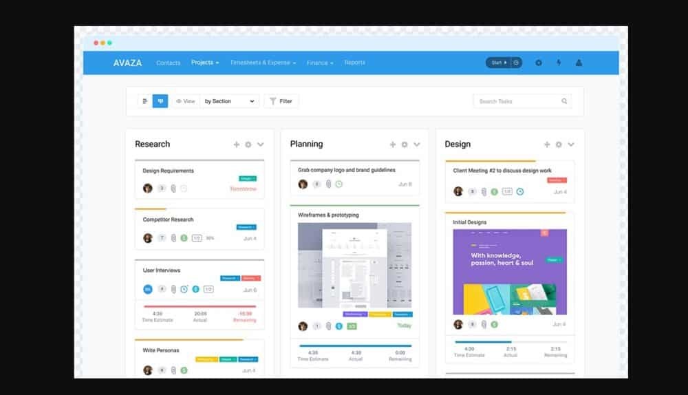 Avaza also offer users list-view, kanban boards and Gantt charts to choose the appropriate task layout. With Avaza, users can easily create new tasks and assign to the team and customers, as well as set deadlines.