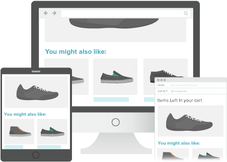 Cart Abandonment Emails. Re-engage customers with remarketing emails. Capture more email addresses. Include product recommendations. Responsive templates for triggered emails. Multi-stage campaigns. Ability to show items in cart. Rich segmentation. A/B testing. Email suppression. ESP integration.