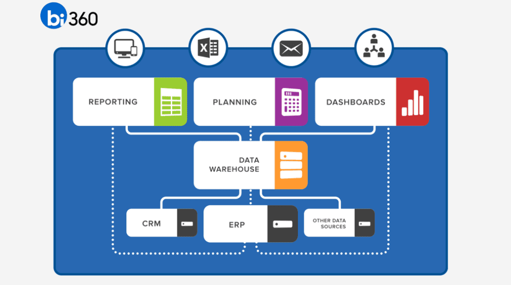 BI360 provides a complete Excel and web-based suite, comprised of Reporting and Budgeting, Dashboards and a pre-configured Data Warehouse.