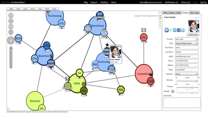 SocialSalesMap is a powerful, yet very user-friendly online tool helping sales teams to hunt and farm new business by visualizing and analyzing relationship networks.