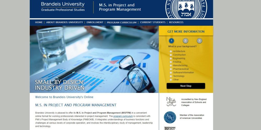 Brandeis University’s Master of Science in Project and Program Management online format offers convenience for working professionals who are interested in earning a master’s degree in project management while still working.