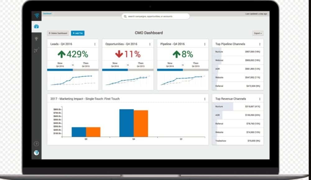 • Has a full-funnel reporting suite that ensures an entire marketing team has visibility. • Tracks how every marketing program contributes to pipeline and revenue. • Helps a company to achieve revenue goals as one team through shared metrics. • Helps to make better decisions, improve productivity, and allocate the right spend. • Helps to tackle marketing reporting challenges. • Helps to forecast what moves the needle of a business so that a business can deliver the right touch at the right time.