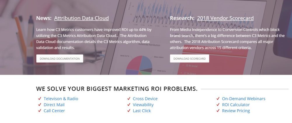 C3 Metrics is an attribution data cloud software uniting user-level viewability, cross-device matching, fraud removal and audience segmentation across both digital and online media. The advertisers utilizing C3 Metrics realize a 15%-44% improvement in ROI as it solves the most significant marketing ROI problems concerning television and radio, direct mail, call center, cross-device, viewability, and more.