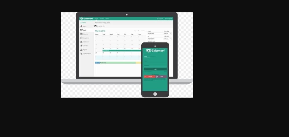Calamari is a web application so users can access it everywhere in a native application for Android and iOS devices to apply for time-off, vacations and remote work, approve or reject employees’ absence and timesheet requests, track attendance with iBeacon technology, clock in with GPS location and receive notifications.
