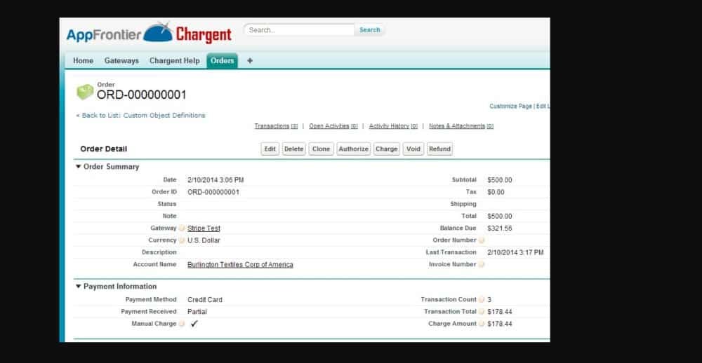 Chargent comes with pre-built integrations to 20+ payment gateways, with developer tools that make it easy to customize to fit any business process. Chargent is the only 100% native payment processing application on the AppExchange. It works directly from Opportunities, Cases, or Chargent Orders (custom). It controls all logic in Salesforce, just communicate with the gateways.
