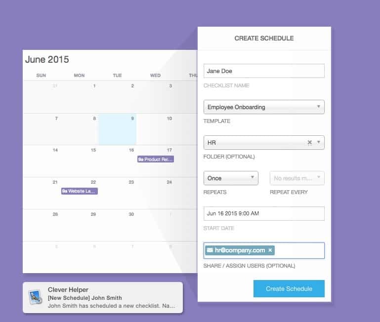 Great checklist software that solves business process and task management problems fast. Evaluate your project management process to ensure no key steps are missed. Clever Checklist reduces the risk of variation and failure by using templates that systemize the success of your team. Schedule recurring work to meet quality standards and increase accountability.