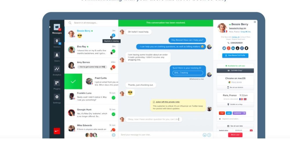 Crisp offers a Bot Auto-Responder which saves the user’s time by replying automatically to frequently asked questions. Crisp includes video calls, which let the users make direct contact with customers with no external plugin required.