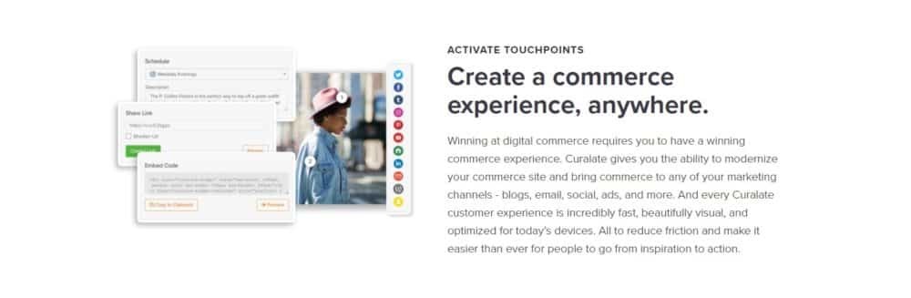 It also includes the Foster discovery feature that enables you to go beyond search. Curalate pairs visual content with machine learning to put great finds in front of your customers. Curalate offers the most advanced and intuitive platform for turning visual content into commerce. With Curalate, you can source more content and activate content faster, giving you an unparalleled ability to drive commerce at scale. This platform increases loyalty by not just selling but also celebrating. It features user-generated content (UGC) in your digital commerce environment deepens your connection to customers, turns your fans into fanatics, and compels people to create images and videos that tell your story, authentically.