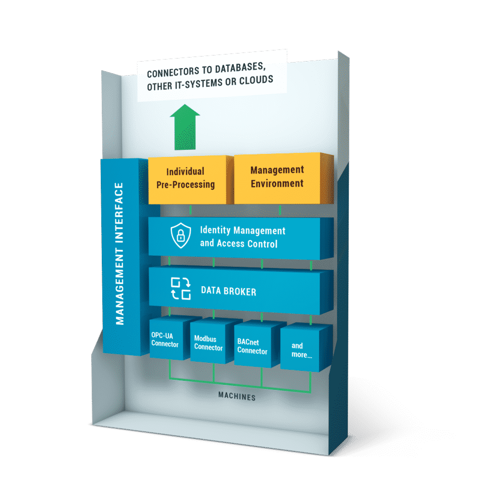 On the other hand, target customers are component/machine manufacturers or other service providers who want to focus on their application only and offer a gateway solution which gives their end customers full local control over their data. At the moment, we mainly focus on companies engaged in discrete manufacturing (metalworking and automotive sector), but as the technology is universally usable, we also attract demand from process industry or other critical sectors, e.g. healthcare, aerospace, energy, utilities, smart vehicles, etc. Reference customers are Pfannenberg, Schunk, TüV Nord, Wittenstein, B. Braun.
