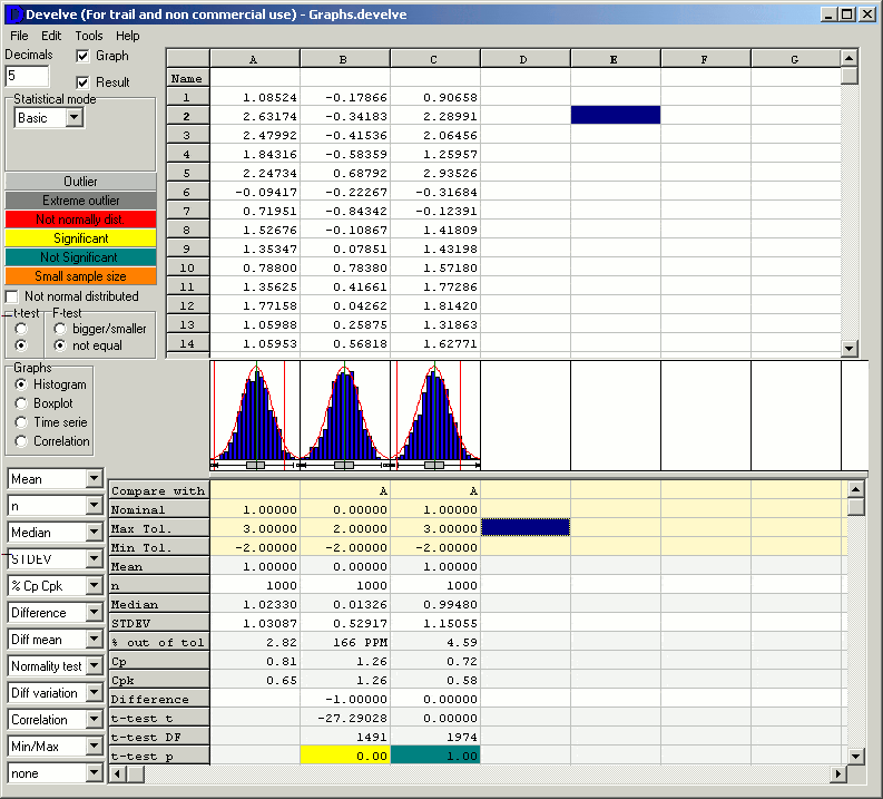 Develve also indicates variables in cases when the variables are significantly different. Develve also clearly enables users to indicate variables when the sample is big enough therefore preventing false assumptions. Development of robust product is also made possible easier by using Develve toolbox. Develve also features mean, median, correlation test, graphs, distribution fitting, filter, skweness, t-test, compare with and difference components that are all important in experimentation, interpretation and analysis of statistical data