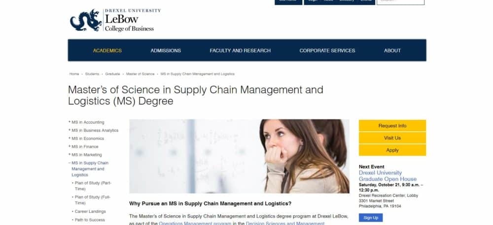 Master of Science in supply chain management and logistics from the University of Drexel is a fundamental program designed for all prospects in the field of supply chain management and logistics. Skills and techniques developed during the study give students an upper hand in the supply chain environment. The STEM-approved program sheds light into the diverse field of supply chain and gives birth to sought-after graduates.