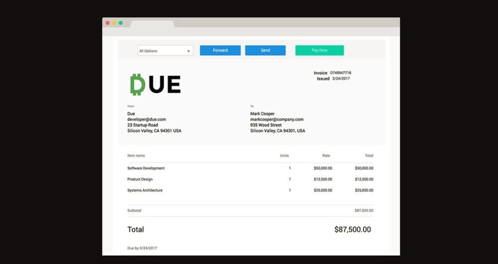 Due is a free online invoicing software for freelancers, small business owners, and companies of all sizes that takes away the effort spent in creating invoices and chasing payments.