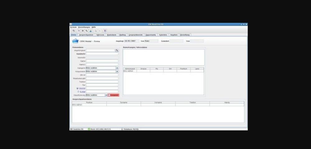 EBI Neutrino R1 is a ERP / CRM Framework for ERP and CRM software. Database independent MySQL Oracle using hibernate sql framework,
