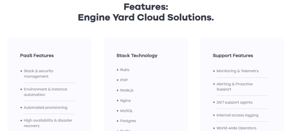 Engine Yard is the leading cloud orchestration platform empowering developers and DevOps to provision, manage, monitor and control applications in the public and private cloud. The company gives our unmatched control and choice through a broad and trusted application cloud, coupled with expert support, enabling the customers to focus on creating great applications instead of managing their platform. Engine Yard provides network management and automatically configures all security group and firewalls. Engine Yard presents user access management. The environment management is also provided by Engine Yard which easily copies the entire environment for testing purposes. Engine Yard cloud receives updates for both currency and security patches. The customers can deploy application from a public or private git repo by using Engine Yard Dashboard and CLI tools. Customers can easily deploy applications to the cloud using the Engine Yard Platform. From smaller-scale web applications that run within a single compute instance, to production applications that require the elasticity, scalability and reliability of multiple instances running at “full-tilt”, Engine Yard can scale with customer's needs. The Engine Yard solution leverages open source technologies to automate the configuration, deployment and management of applications on multiple infrastructures. Engine Yard provides SSO and security, API's for fine-grain control, infrastructure abstraction, and much more. Engine Yard platform components includes pre-integrated and pre-tested technology stacks for Ruby, PHP, node.js and Java applications. It also includes third party services from leading vendors and SaaS providers that provide additional application capabilities, such as application monitoring, email services, and continuous integration.