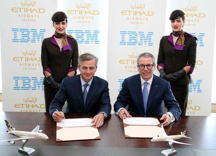 Etihad Airways Cloud Collaboration with IBM to Transform Global Operations : Etihad Airways and IBM announced a ten-year technology services agreement worth approximately US$700 million. This will allow the airline to enhance guest experience, develop world-class infrastructure and security, and improve efficiency.The transformational agreement, one of the most important strategic collaborations by Etihad Airways, will provide access to the latest cloud-based technologies and services for the airline, its group companies and equity partners. Etihad Airways, one of the fastest-growing airlines in the world, carried 14.8 million passengers in 2014, and serves 113 passenger and cargo destinations.
