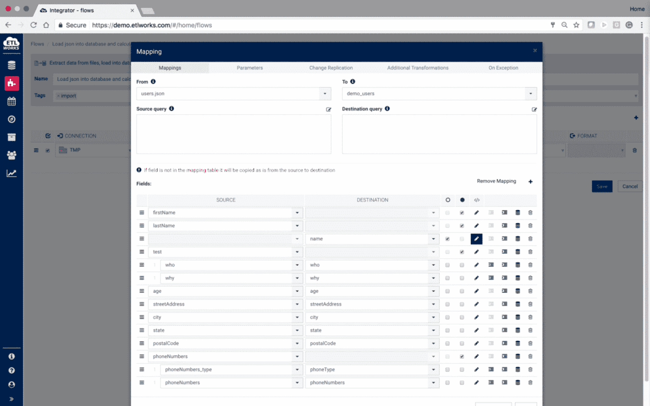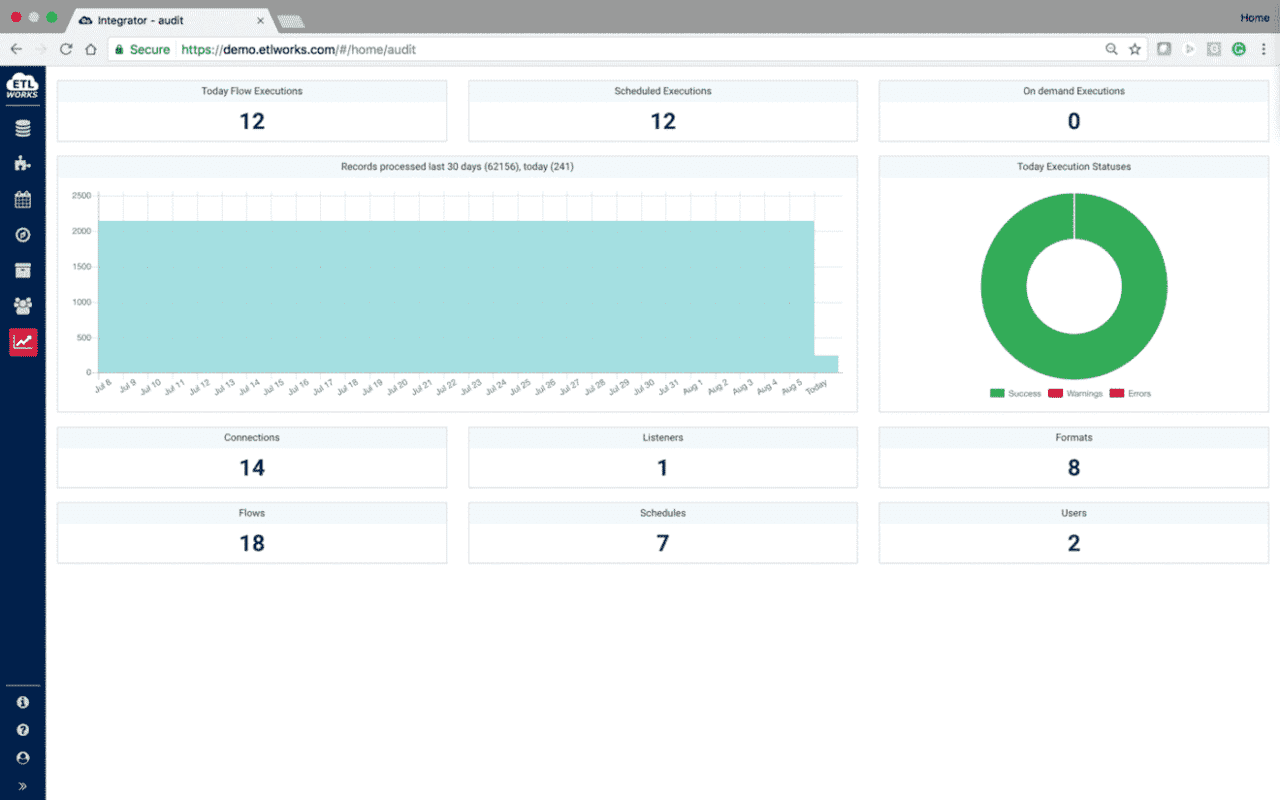 Etlworks Integrator is a powerful and easy-to-use cloud data integration service that can work with structured, semi-structured data and unstructured data of any type and size. Users can create and execute very complex data integration scenarios in no time, right in the browser, using intuitive drag and drop interface.