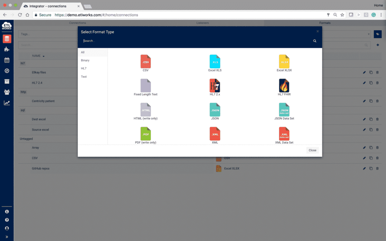 Etlworks Integrator can connect to almost all relational and NoSQL databases, local and cloud based file storages, public and private APIs, social networks, as well as read and write data in most common data exchange formats. If the connector you are looking for is not on the list, we can build it for you in no time. Etlworks Integrator also comes with a unique Explorer, a business analytics and data visualization add-on that supports exploring and visualizing any data, regardless of the format and location.