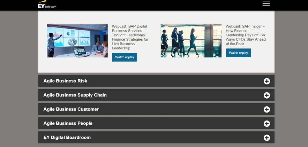 This collaboration helps drive digital transformation for clients across areas including finance, human resources, supply chain and procurement. Through global alliances with GE Digital, IBM, Microsoft and SAP, EY blend emerging technology in areas such as Blockchain, machine learning, Internet of Things and cybersecurity with business innovation to help clients solve their most complex issues and maintain competitive advantage as they transform to a digital organization.