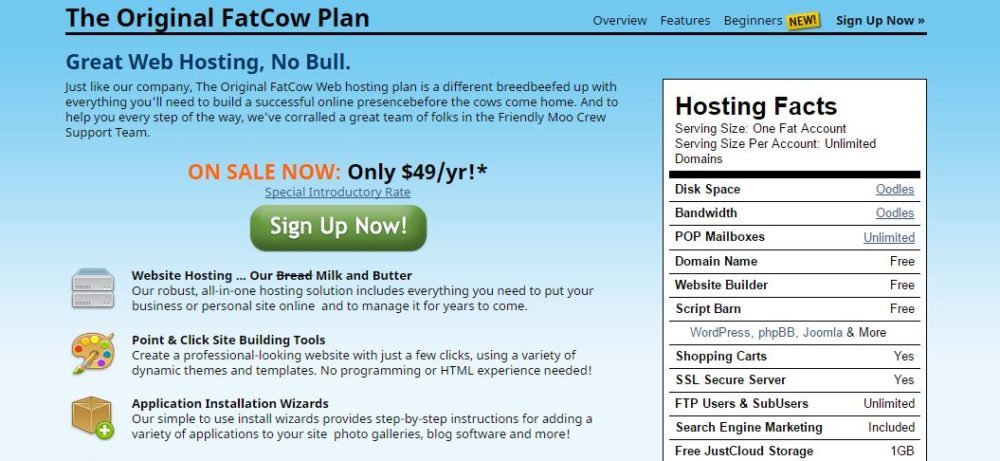The Original FatCow Web hosting plan is a different breed beefed up with everything you'll need to build a successful online presence before the cows come home.