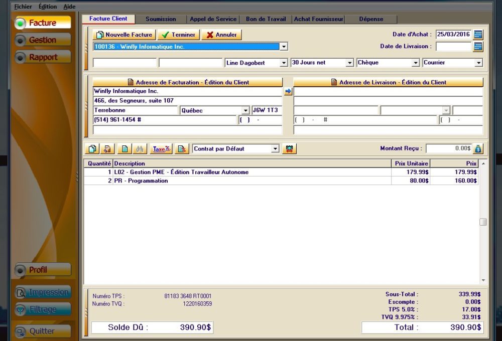 Gestion PME also allows viewing and printing in record time and directly on the forms Revenue Quebec and Revenue Canada for GST and PST report. The invoicing edition allows managing the customers, invoices, and employees as well as the products and inventory. The barcodes edition provides access to all the functionality of a POS version and eliminates the hassle barcodes.