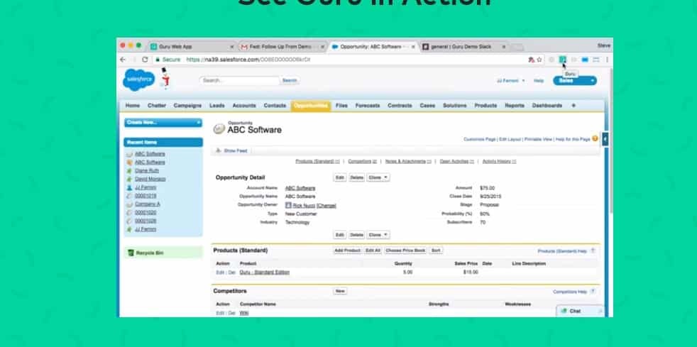 Guru empowers your sales representatives to sell faster and more confidently by arming them with relevant sales knowledge and assets directly in their workflow. Guru’s browser extension and Slack bot integration provides agents with one-click access to situational sales knowledge and marketing assets enabling them to reduce time spent searching for information.