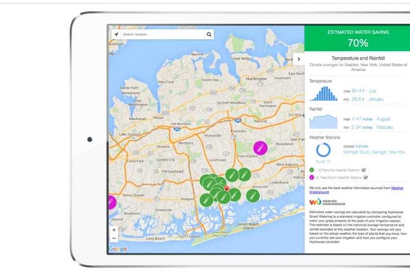 Hydrawise automatically adjusts watering based on highly accurate, internet-sourced local weather data.
