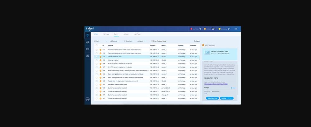 With Indeni, an organization has an excellent platform to automate repetitive tasks which save times spent in downtime. The Indeni Server provides a dashboard that includes pre-built integration to devices, proactive notifications of issues, reporting for trends and analysis, and actionable remediation steps. The Indeni Server enables users to receive a notification before an issue takes place.