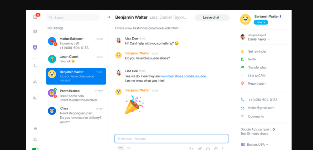 JivoChat allows visitors to talk to you using their favorite platforms; therefore, you will never miss an opportunity to make a connection. Some of the features offered by JivoChat include live chat for websites, Jivo business phone, callback, company’s email integration, API for developers, and integrations.