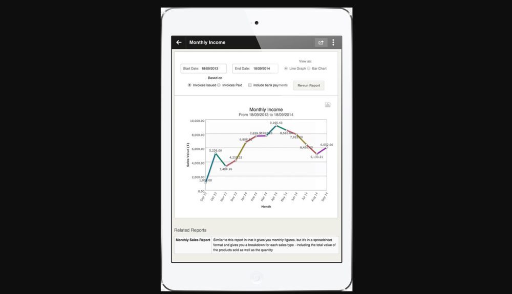 The intuitive invoicing makes it easy for you to control your quotes and automatically send to customers with your own logo and branding. The reports provided by the platform enable users to keep an eye on their performance on profit and loss, stock control and self-assessment.
