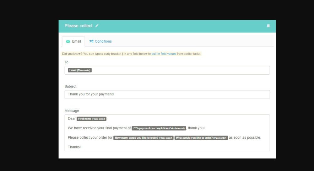 Taskflows ranges from request for leave, ask for a quote from movers, interactive storybook and manage the crowdsourcing translation of a book. Kotive also features an integration with both Mandrill and Sparkpost which gives users the option to use one of these email service providers to send personalized transactional emails that contain the user’s business’ branding and ‘from’ email address.