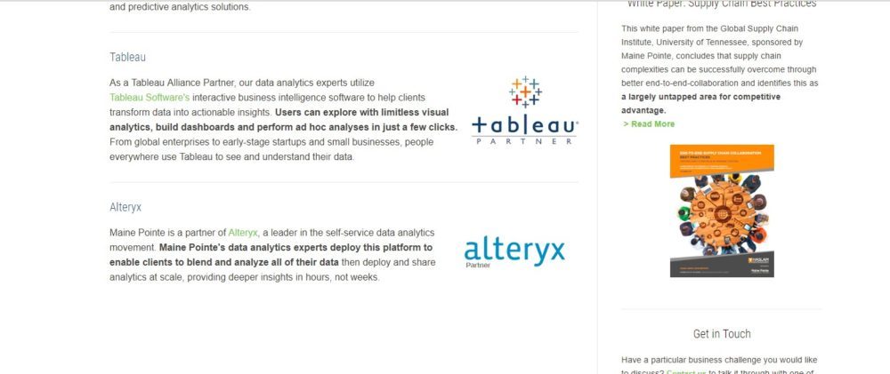 As a Tableau Alliance Partner, their data analytics experts utilize Tableau Software's interactive business intelligence software to help clients transform data into actionable insights