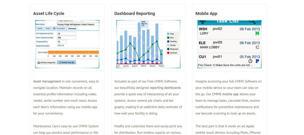Maintenance Care preventive maintenance provides you with an excellent platform for planning and improving building efficiencies automatically through an effective CMMS scheduling platform. Maintenance Care also provides you with an asset management feature that allows you to quickly and accurately track all the expenses related to assets in your facility. The primary features provided by Maintenance Care include easy work order, maintenance tasks, preventive schedule, an asset lifecycle, dashboard reporting, and a mobile app.