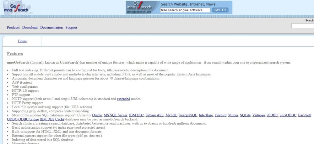 mnoGoSearch is a full-featured web search engine software made for intranet and internet servers. mnoGoSearch software has a number of unique features, which makes it appropriate for a wide range of applications from search within user’s site to specialized search systems such as cooking recipes or newspaper searches, ftp archive search, MP3 search, news articles search or even national-wide portal search engine.