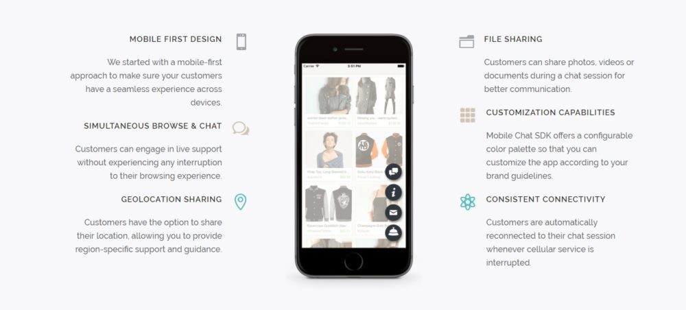 Moxie’s proprietary Mobile Chat SDK integrates seamlessly with iOS and Android applications which enables the users to instantly connect with the user’s customers without them having to open a browser.