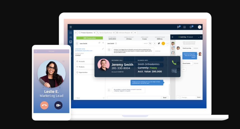 ● Business communication suite - Team collaboration, business analytics, sales and service CRM, Phone service, survey, live chat, software