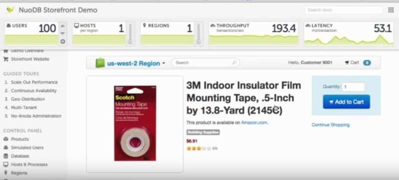 • Storefront demo application includes user experience improvements to enable more realistic and robust evaluation and testing of the NuoDB database