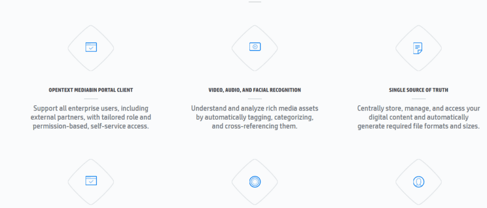 OpenText MediaBin support all enterprise users, including external partners, with tailored role and permission-based, self-service access.Understand and analyze rich media assets by automatically tagging, categorizing, and cross-referencing them and Centrally store, manage, and access your digital content and automatically generate required file formats and sizes.