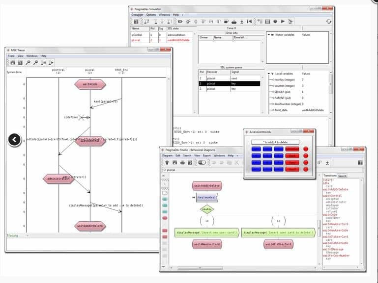 PragmaDev Studio is a modeling tool which helps managing complexity inherent to developing todays communicating systems. It integrates four different tools based on international standard technologies. Each tool is dedicated to a user profile: architects/system engineers, developers, and testers.PragmaDev Specifier helps system engineers to unambiguously specify and verify the functionalities of the system, and define the best architecture for performance or energy efficiency.