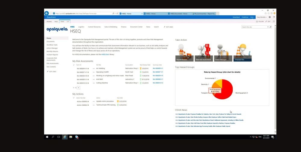 Pro-Sapien's EHS Management Systems enable the users to capture, track and report on the user’s data straight from SharePoint. Pro-Sapien's enterprise EHS software is deployed into the user’s existing SharePoint portal to integrate with key Microsoft programs such as Outlook to make processes seamless.
