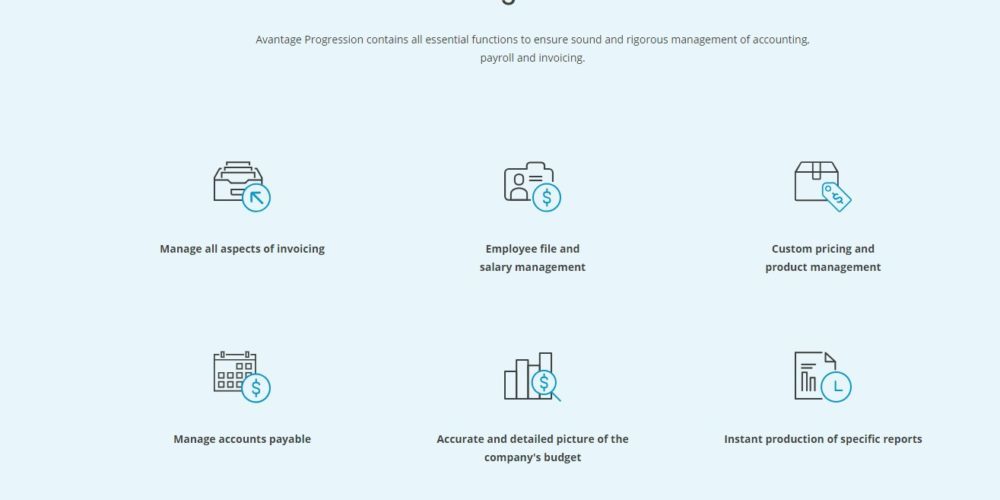 Avantage Progression SE contains all essential functions to ensure sound and rigorous management of accounting, payroll and invoicing.