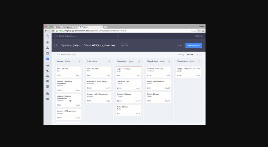 Propeller CRM is a powerful and minimalist CRM tool designed for marketing and sales teams to work directly inside Google Suite and Gmail. Propeller CRM also helps the sales and marketing teams to drastically reduce the need to track their activity manually and in separate CRM systems. With Propeller CRM, the sales teams have an excellent platform to get access to all the information about the people they are emailing with along with the tasks and follow-ups. The marketing teams also have a perfect opportunity to use email templates to quickly and accurately send multiple emails with the same or similar content. Propeller CRM also helps to connect to Gmail account to see all the email history automatically. The Gmail integration feature enables tracking emails and getting notified when a contact opens an email, setting follow-up reminders to avoid missing out on potential deals, and using templates with variable fields for faster correspondence with multiple accounts. The email campaign feature facilitates creating multi-step email campaigns to nurture leads or cold email prospects. The email campaign feature also allows users to generate different campaigns for industries or different products. Through this, the sales team can use variable fields to give that personal touch to their customers. The pipeline management feature enables managing multiple pipelines for sales, recruiting, business developments, and more. The feature also offers an intuitive and visual design that allows seeing exactly where the opportunities are stacking up. The sales and marketing team can also create opportunities from converted leads, accounts, or contacts all from Gmail.