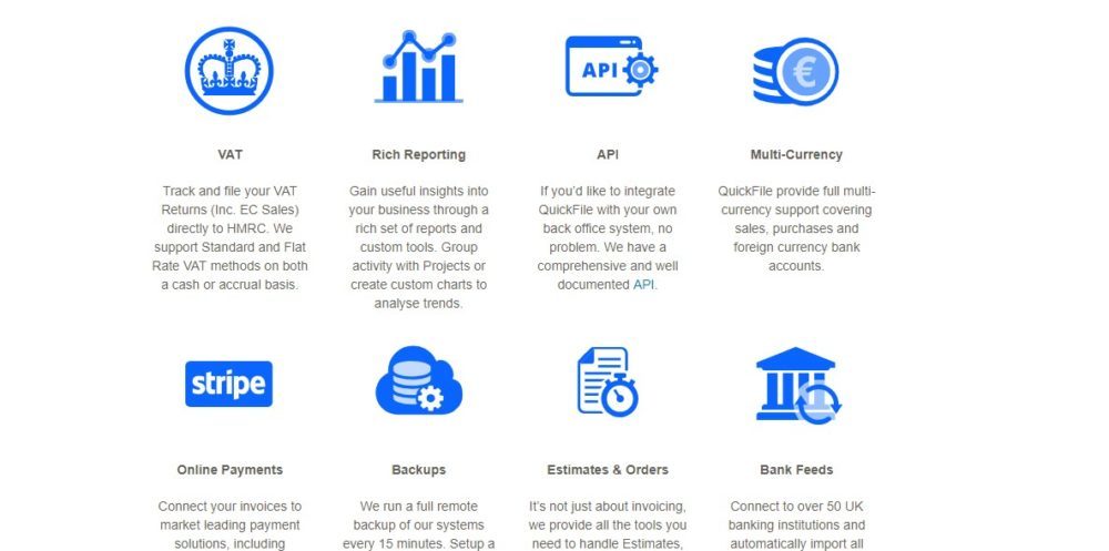 No steep learning curve. A simple, yet effective piece of software to aid businesses with their bookkeeping and accounting, QuickFile often implements new features based on community demand. QuickFile can create a branded online portal where clients can view, download, print and pay their invoices through a growing list of portals including PayPal, Stripe, GoCardless, Worldpay, SagePay and more. QuickFile provides full multi-currency support covering sales, purchases and foreign currency bank accounts.