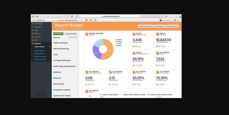 Raven being an online marketing platform saves you or your agency more time, allowing you to end the tedious spree if monthly reports. You can create custom and comprehensive SEO, social and PPC marketing reports in minutes, then schedule them on a weekly, monthly or quarterly. Raven allows you access to more than twenty data connectors, inclusive of Google Adwords and Google Analytics among others. With the Ravens Site Auditor, you can automatically crawl any site to gather data about key technicalities, on page SEO areas in addition Raven supports Google’s latest requirements such as page speed and mobile UX. Raven enables users the creation of unlimited campaigns, and with the affordable agency plan provided unlimited users accounts. You can also save on time and money by making reports in minutes and not days from the collected data and automated features. You can show clients how they have helped them succeed with PPC and other online marketing campaigns using Ravens simple and customizable drag and drop report building tool. Raven allows you to send reports from a daily basis to a quarterly basis all run from your own flexible schedule.