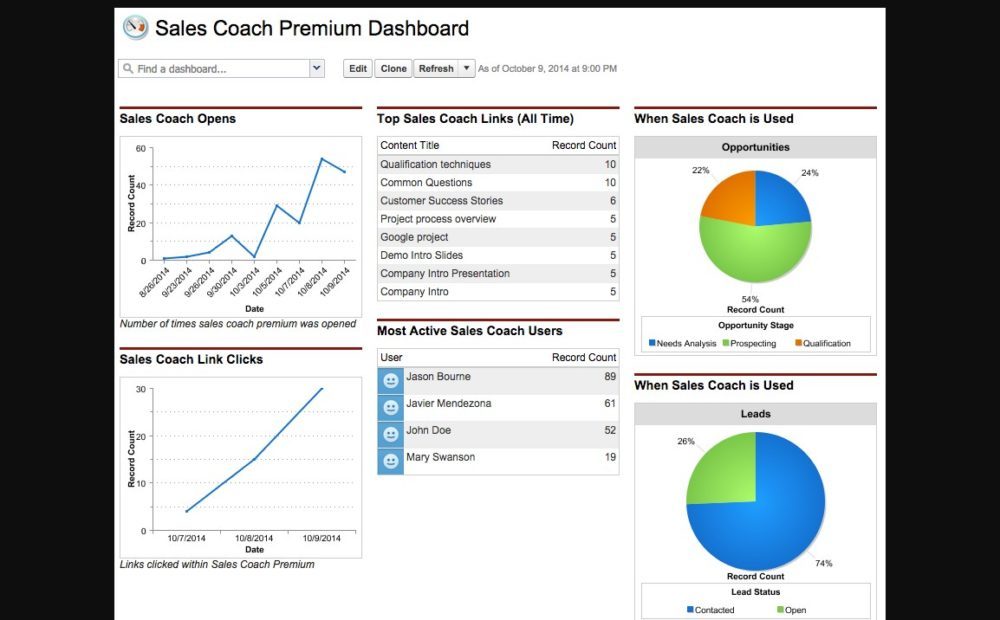 Sales Coach allows you to specify checklist items and helpful resources for each opportunity stage as well as custom record types for different sales processes. Sales Coach Premium works with Leads, Accounts, Contacts and Opportunities.
